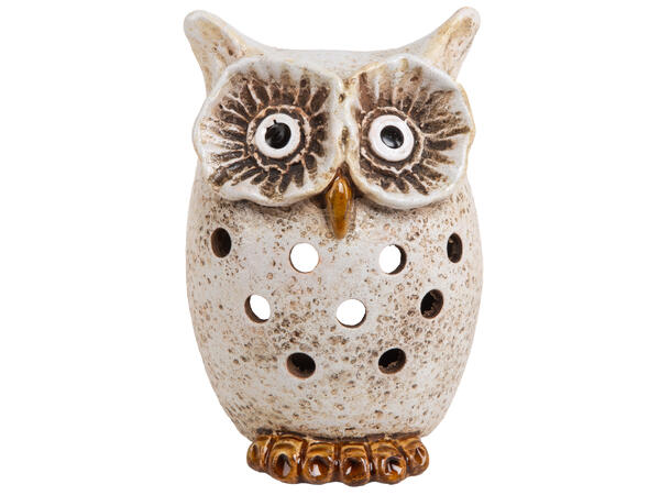 Ugle til telys beige keramikk 8,3×12,7cm